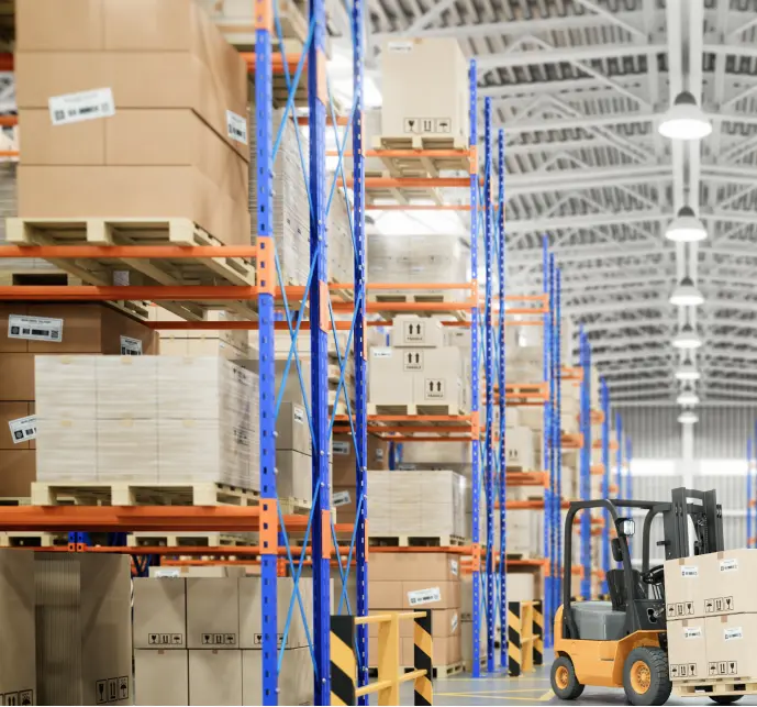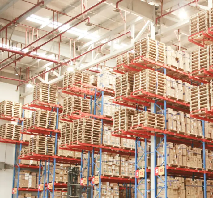 悦信物流专注中大件和电子产品,仓库配置的均是超10米的高货架,通道留宽以使用科朗标准堆高机,进而更高效的为中大件客户服务。